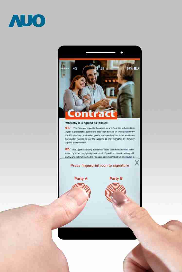 尊龙集团结合指纹辨识、、、触控、、、显示的三合一 LCD 面板提供 50 毫米x 50 毫米的大感测面积,,,,多指指纹辨识特别适用金融交易,,,大幅提升安全性。。。。